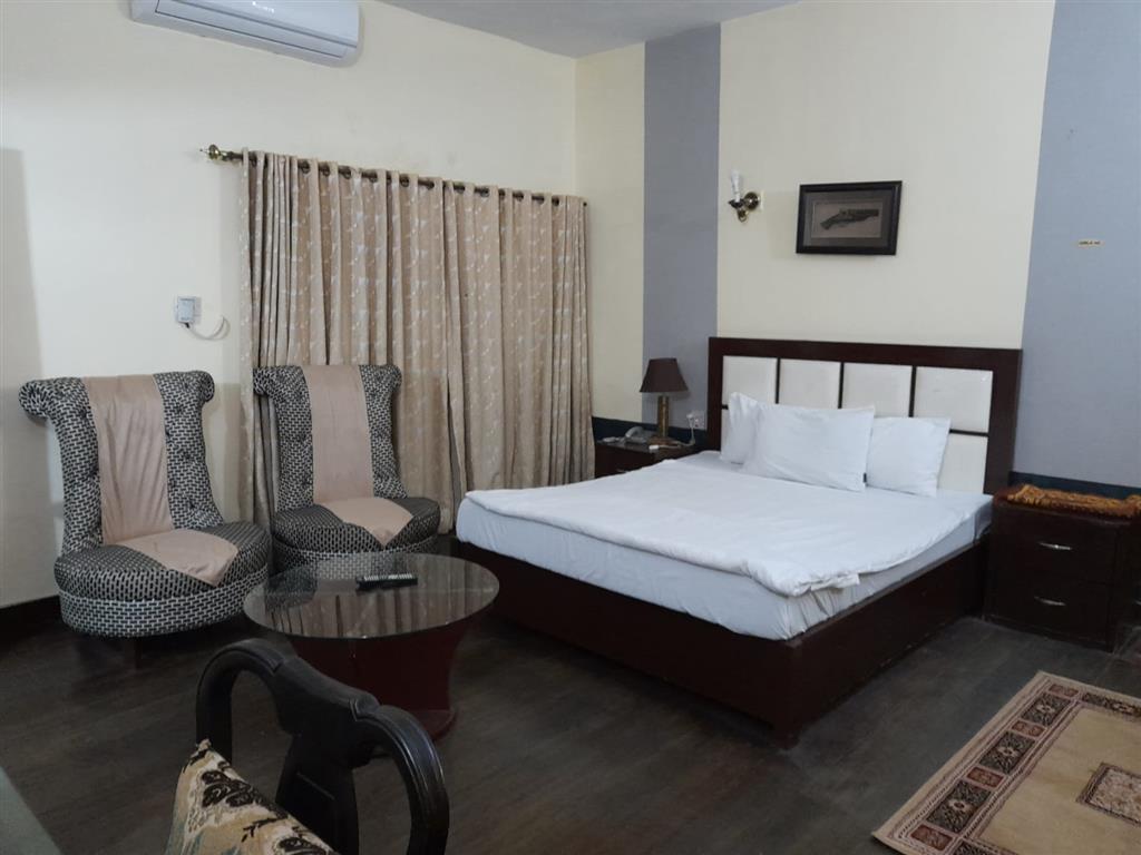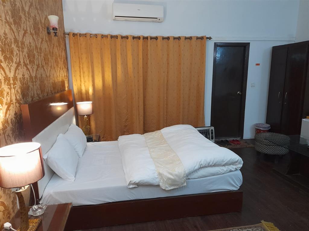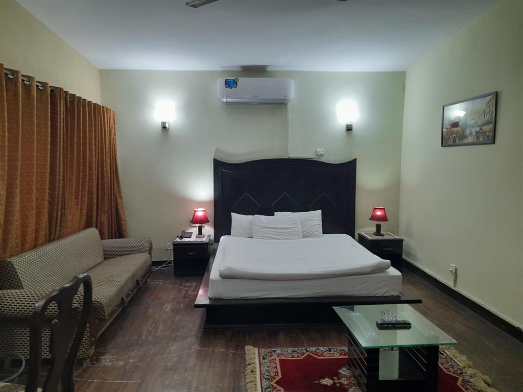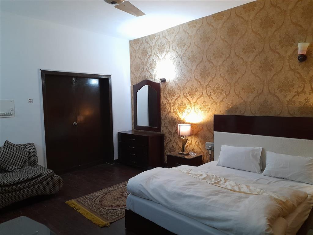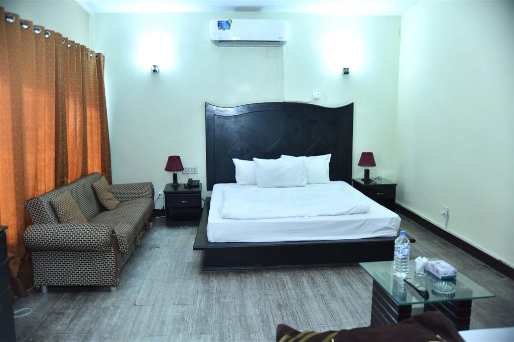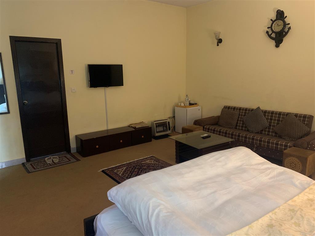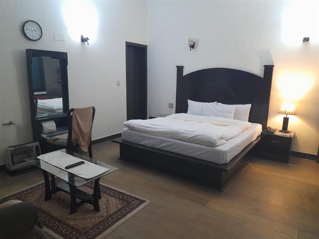 Description:Junior suite with Garden View. Carpeted room located at 1st floor with having a big size windows towards Margalla hills of Islamabad as well as Capetown Garden.The room size is 18*18 square feet with attached bathroom and one master bed with one single bed having three seater sofa with front table, one and half ton inverter, one small size refrigerator wall clock, two side tables ,telephone extension, two lamps, one large size 40*32 LCD, wall mounted cupboard. Round the clock WIFI Service available on router name 1st floor