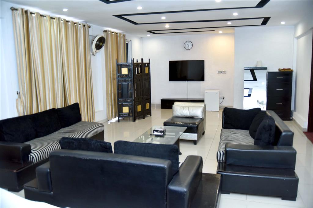 Description:DELUXE KING SUITE: Imported marble slabs floor Room size 20*17 square feet. Located at 1st floor having four big size Glass, surrounding windows, separated in coming, out going door attached ,20*20 Marble slabs terrace where you and your family can enjoy the surrounding around you and your privacy. one king size master bed, seven setter sofas, Glass table, office chair with desk table, dressing table attached Bath Room ,side wall mounted celling fan, small size refrigerator wall mounted50*40 home theatre, two door cupboard, one telephone extension 24/7 connected with the reception, two side lamps, and one and two ton inverter,Round the clock wifi single reachable through router name 1st floor